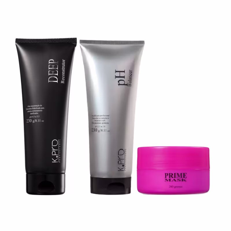 Não sei o CEPKit para cabelos secos e danificados. Kit K.Pro Deep Recostrutor Trio repõe a massa do córtex e promove uma hidratação intensa e duradoura.