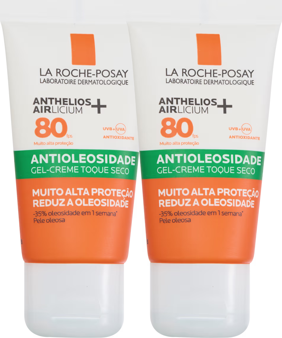 Kit com protetor solar facial antioleosidade. Kit La Roche-Posay Anthelios Airlicium FPS 80, protege a pele das agressões diárias dos raios UVA.