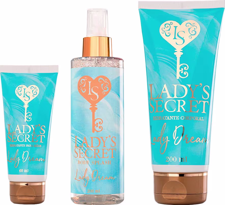 Lady’s Secret Lady Dream - Hidratante Corporal 200ml: fabricado com perfumaria fina, tem sua inspiração de linha olfativa do perfume importado La Vie Est Belle, da Lancôme. A fórmula deixa a pele hidratada e com um toque suave por muito mais tempo.