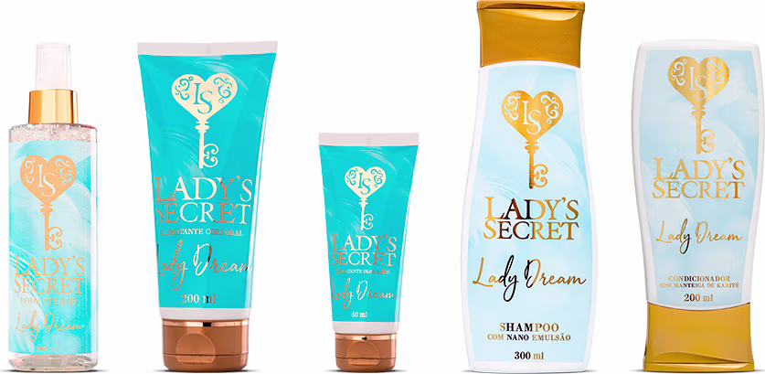 Kit com hidratante, hidratante para mãos, body splash, shampoo e condicionador. Lady's Secret Lady Dream Corpo e Cabelo garante cabelo e corpo perfumados e super hidratados.