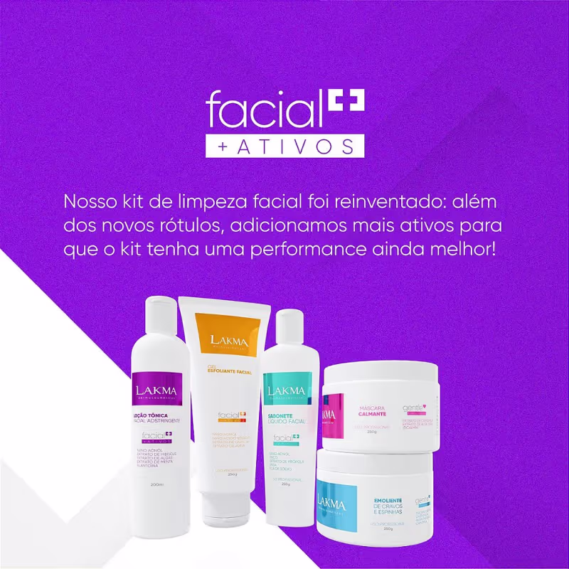Lakma - Sabonete Líquido Facial 250ml: Indicado para realizar a higienização e remoção de impurezas da pele. Para todos os tipos de pele. Possui ação hidratante para peles secas e secativa para peles oleosas. Ativos: Extrato de Própolis: 5%, Zinco Quelato: 4%, PCA de Sódio: 3%, Uréia: 3%.