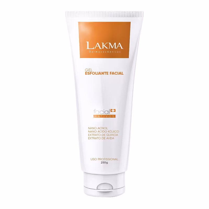 Lakma - Gel Esfoliante Facial 250g: Indicado para realizar a esfoliação, remoção de células mortas, remoção de impurezas mais profundas aumentando a permeação de ativos antes de procedimentos faciais. Ativos: Nano Ácido Kójico: 1%, Extrato de Quinoa: 1%, Extrato de Aveia: 1%.