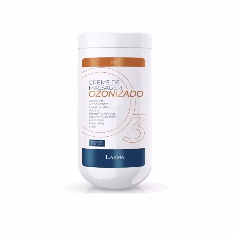 Lakma Ozônio Premium - Creme de Massagem Ozonizado 900g: Indicado para todo e qualquer tipo de pele, auxiliando nas manobras de massagem corporal, como drenagem linfática, massagem modeladora, massagem relaxante e etc. Uso corporal. Auxilia no tratamento de celulite, flacidez e gordura localizada. Sua fórmula de alta absorção e liberação do ozônio, permite resultados surpreendentes. ATIVOS: Carbe-03, Nano Ozônio, Oxigênio Ativo, Arnica, Centelha Asiática, Castanha-da-Índia, Erva-Mate, Cavalinha e Hera.
