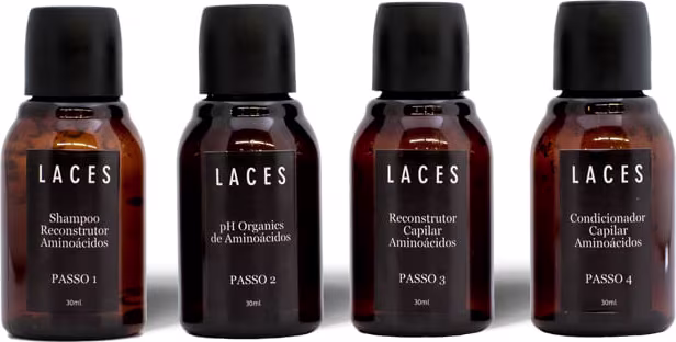 Kit com shampoo, condicionador, reconstrutor e pH organics. LCS Hair Care Laces Ritual Aminoácidos é um tratamento que devolve cerca de 19 aminoácidos aos fios.