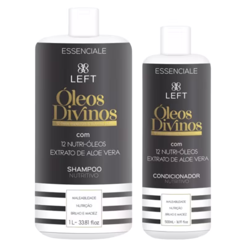 Não sei o CEPKit com shampoo e condicionador para todos os tipos de cabelo. Left Cosméticos Óleos Divinos Salon confere nutrição com 12 óleos especiais.
