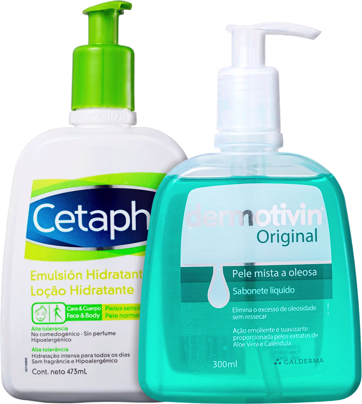 Não sei o CEPKit com loção hidratante e sabonete líquido para peles normais, secas, mistas e oleosas. Limpeza e Hidratação Duo limpa e hidrata a pele do rosto e também o corpo, além de controlar a oleosidade sem que a pele fique ressecada.