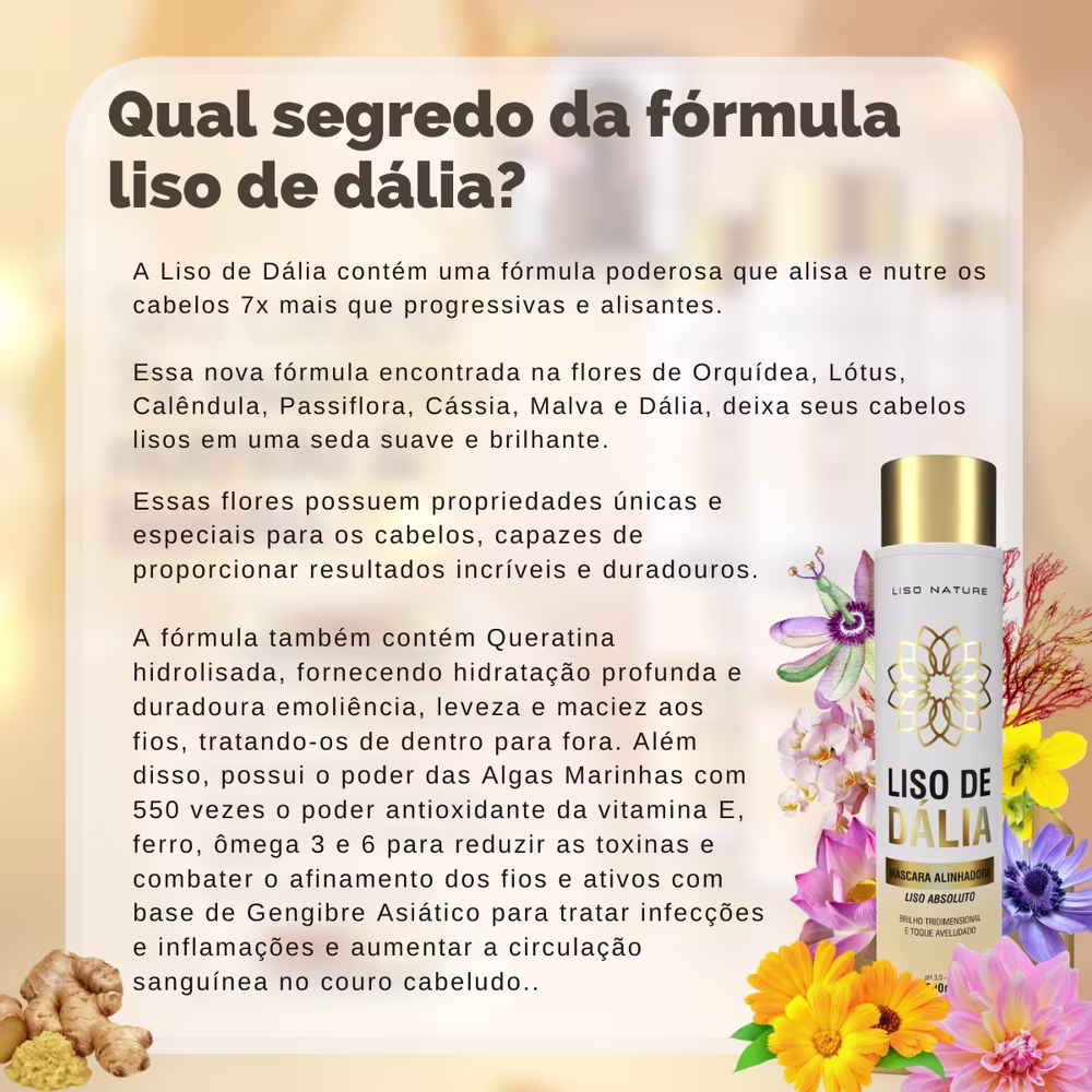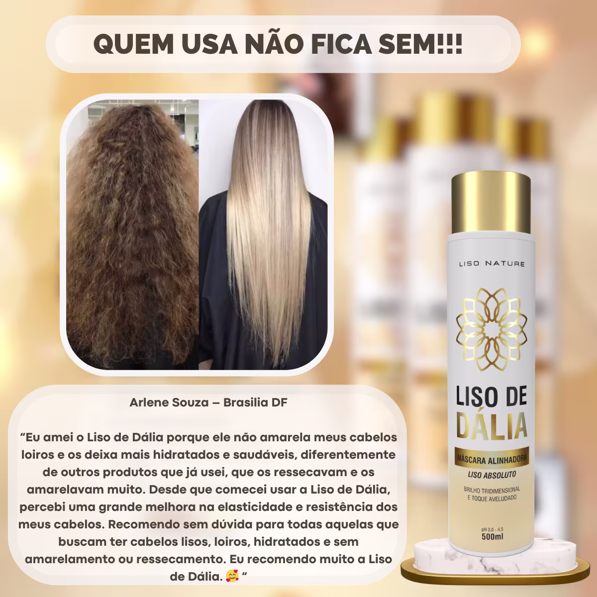 Kit Liso de Dália Liso Absoluto - Máscara Alinhadora, sem Formol, compatível com loiros, tingidos, henê e outras químicas. Liso de Dália na BLZ. Ver mais ❯
