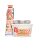 Kit com creme hidratante para as mãos e sérum hidratante corporal. L'Occitane au Brésil Ninfa das Águas oferece hidratação delicada e perfume floral para sua pele!