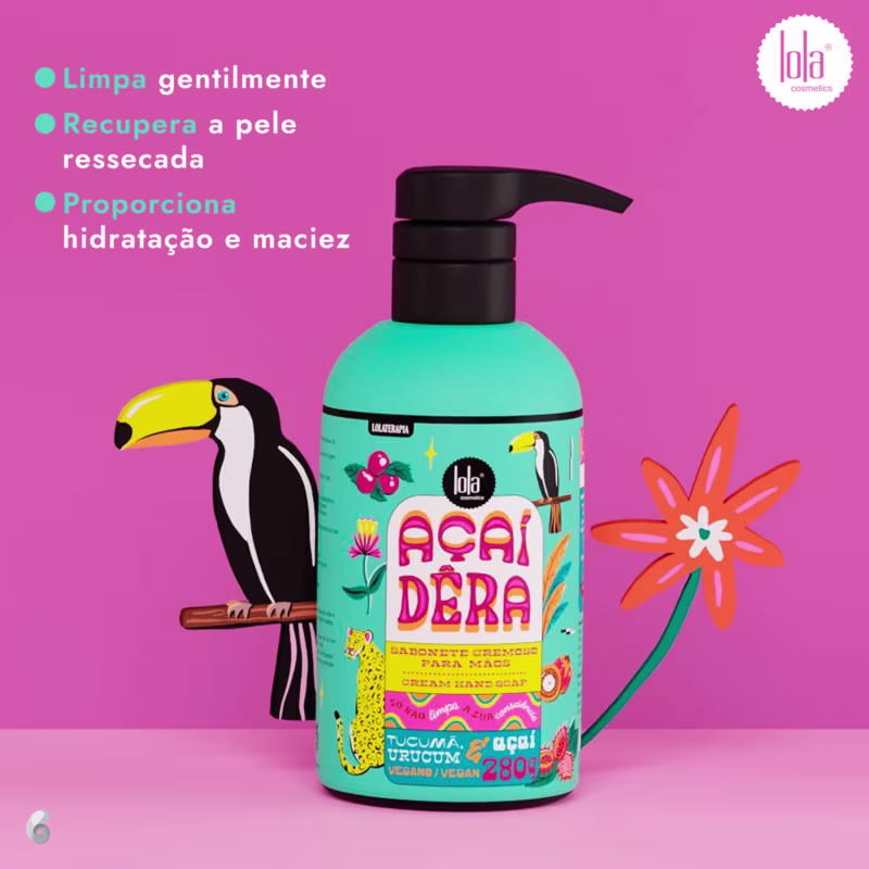 O Kit Lola Cosmetics Açaídêra Trio conta com três produtos, o esfoliante corporal auxilia na remoção das células mortas, tonifica e ilumina a pele, deixando-a mais macia e uniforme. Já o sabonete cremoso para mãos, limpa e hidrata as mãos sem agredir a pele. E para completar, a manteiga corporal reparadora, que restaura a emoliência da pele, deixando-a nutrida, suave e com uma textura suave. Todos os produtos são livres de parabenos e sais.