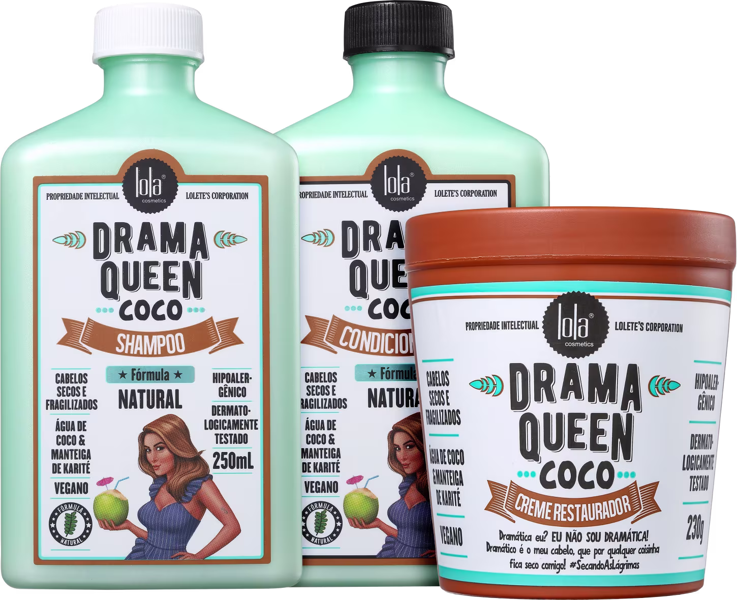 O Kit Lola Cosmetics Drama Queen Coco Trio repõe nutrientes e umidade, além de agir na regeneração da fibra capilar. Consegue deixar os fios muito mais saudáveis e resistentes de dentro para fora.