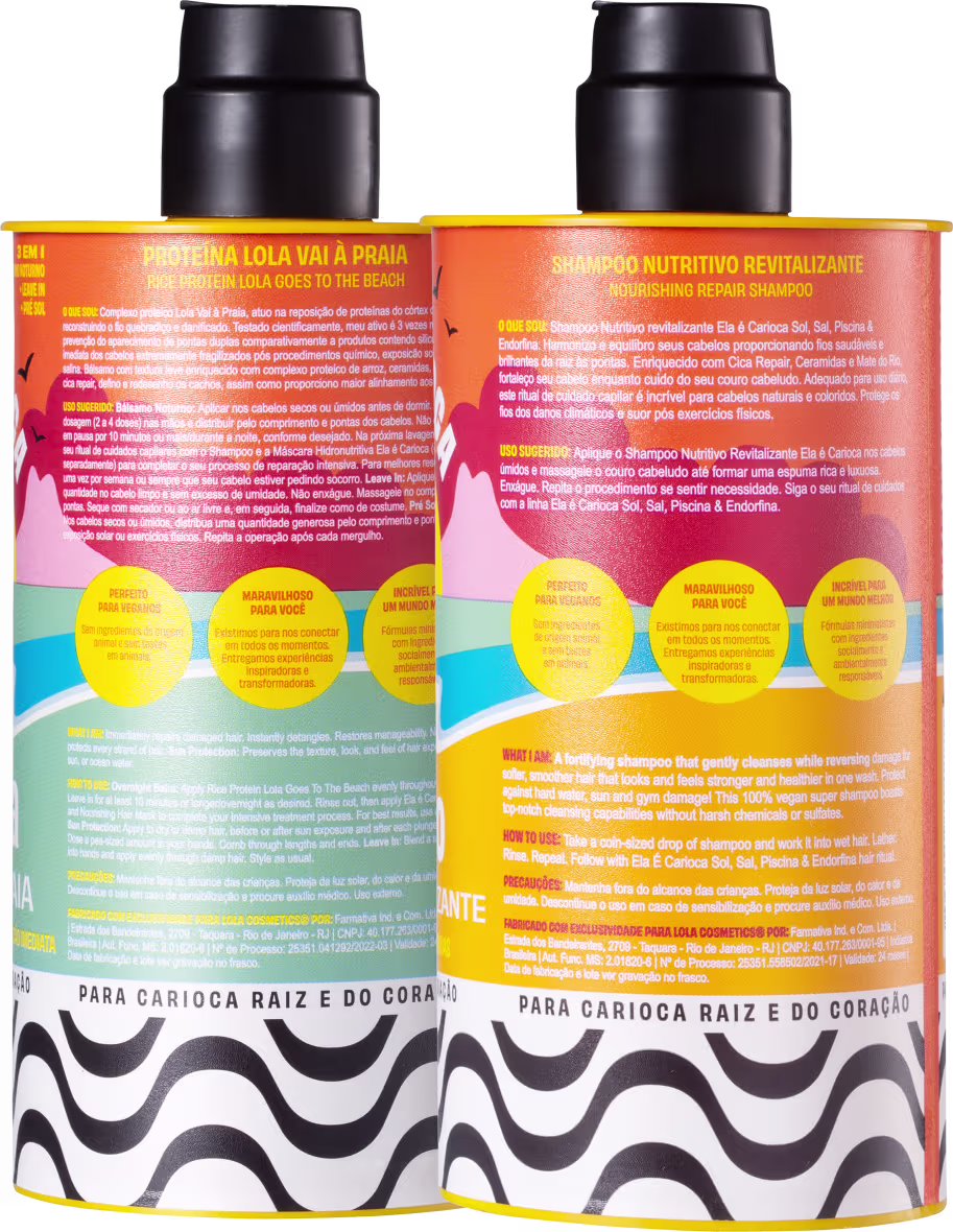 Não sei o CEPKit com shampoo e proteína para todos os tipos de cabelo. Lola Cosmetics Ela é Carioca Sol, Sal, Piscina & Endorfina Proteína reparação imediata aos fios de maneira eficaz e sem agredir.