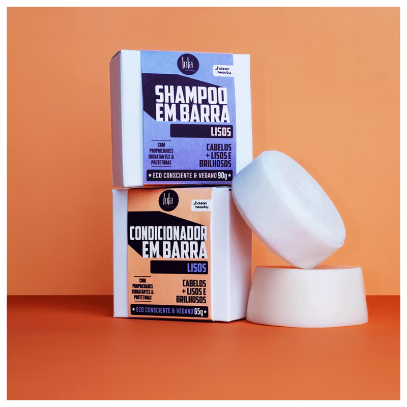 O Kit Lola Cosmetics Lisos e Soltos protege dos raios UV e do calor da prancha e secador, possui ativos hidratantes que ajudam a reduzir o frizz e manter os cabelos alinhados por mais tempo. O shampoo em barra pode render até 80 lavagens, o que equivale cerca de 3 garrafas de um condicionador tradicional.