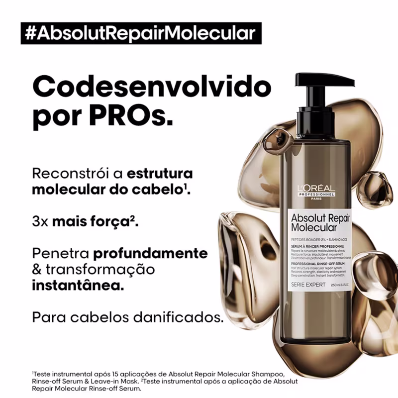 Kit L'Oréal Professionnel Absolut Repair Molecular + Repair Oil proporciona reparação profunda dos fios. Melhores Kits da L'Oréal na BLZ. Ver mais ❯