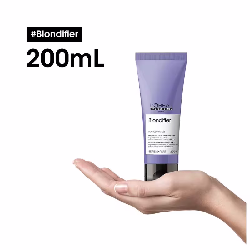 L'Oréal Professionnel Blondifier Gloss: Condicionador 200ml: sua fórmula nutre e suaviza o cabelo danificado. Cabelos loiros com brilho multidimensional, tratados, macios, suaves e mais fáceis de pentear. Enriquecido com Polifenóis presentes no Extrato de Açaí. Ideal para cabelos com mechas também.