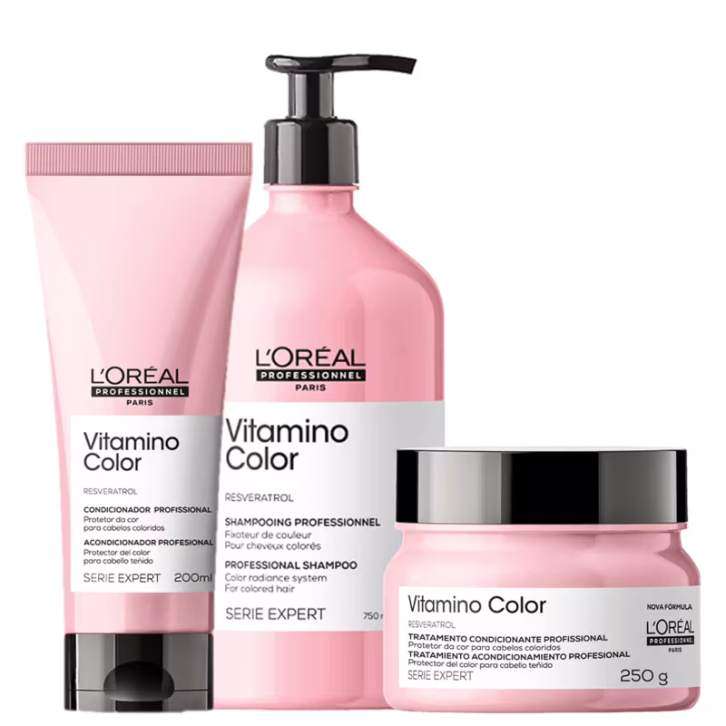 Não sei o CEPKit com shampoo, condicionador e máscara para cabelos coloridos. Kit L’Oréal Professionnel Serie Expert Vitamino Color mantém a vitalidade da cor por mais tempo.