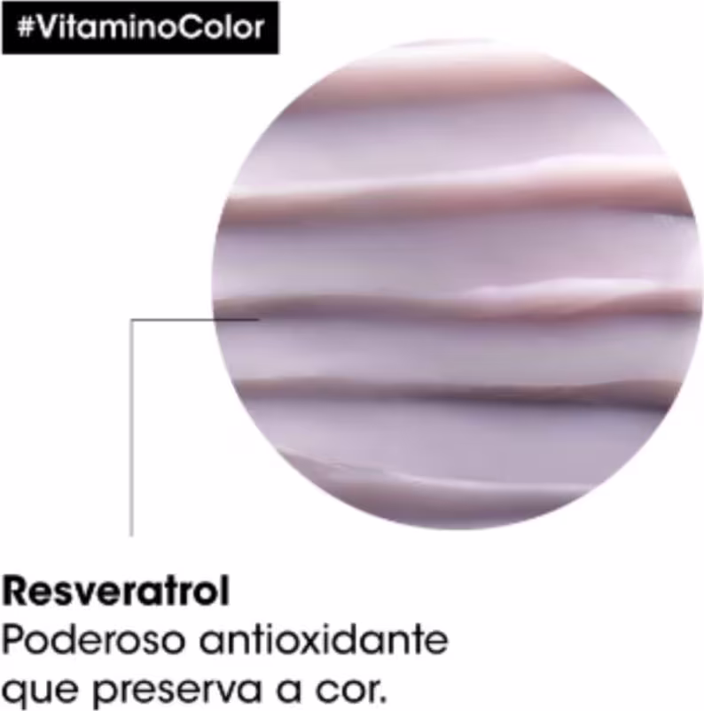 L’Oréal Professionnel Serie Expert Vitamino Color Resveratrol - Shampoo 300ml: realiza uma limpeza delicada que não agride e mantém o brilho da cor. Conta com fórmula antioxidante que evita os danos diários e o desbotamento.