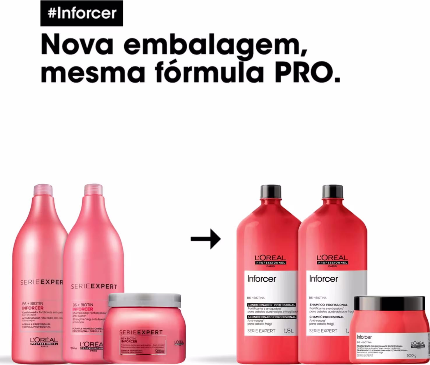 Kit de tratamento antiquebra para cabelos frágeis e quebradiços. L'Oréal Professionnel Inforcer Serie Expert Duo fortalece e estimula o crescimento saudável, como um reforço à fibra capilar.