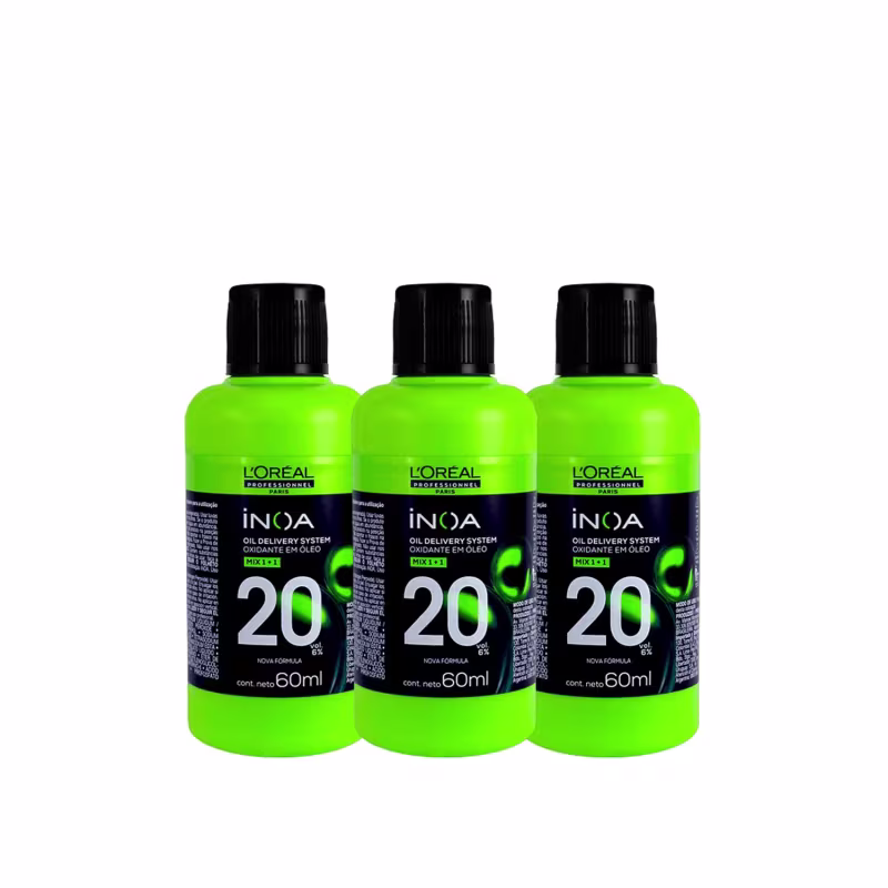 L'Oréal Professionnel Inoa - Oxidante 20 Volumes 3x60ml: possui fórmula com alta tecnologia à base de óleo, sem adição de amônia.