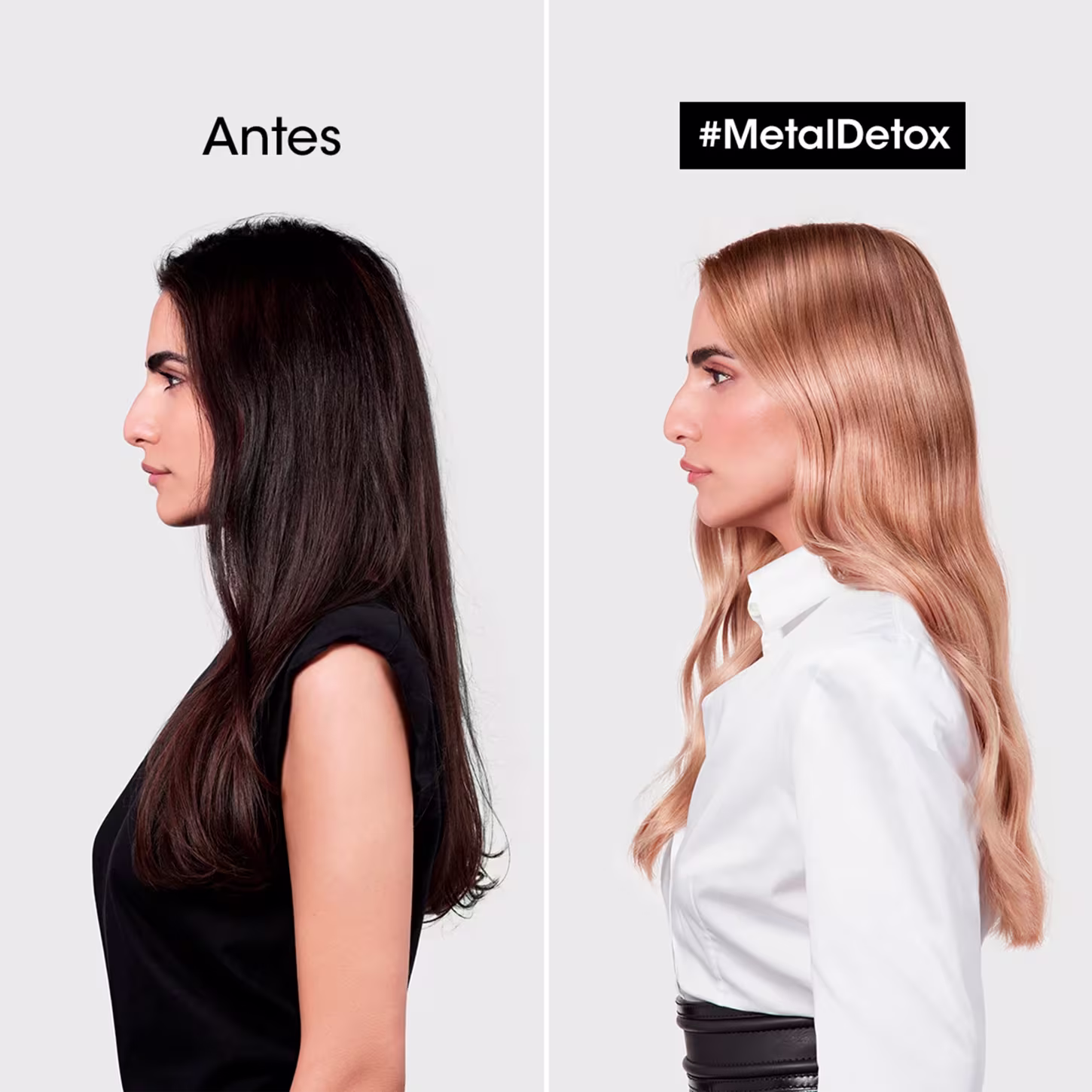 O Kit L'Oréal Professionnel Metal Detox Salon Dupla traz uma tecnologia inovadora para dar mais segurança aos profissionais durante os serviços de coloração, descoloração e mechas, garantindo uma cor mais fiel, fixação da cor e menos quebra dos fios. Graças a glicoamina, uma molécula presente na fórmula de todos os produtos, capaz de atrair e neutralizar os metais, a linha garante que essas substâncias não vão interferir negativamente nos serviços de coloração, onde elas podem ser mais prejudiciais.