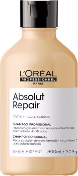 L'Oréal Professionnel Serie Expert Absolut Repair - Shampoo 300ml: fórmula profissional repara e nutre instantaneamente os fios e proporciona um cabelo mais leve, reparado, brilhante e suave sem deixar o cabelo pesado ou rígido. Contém uma tecnologia exclusiva da LOréal, a co-emulsão. Ela age nas áreas mais danificadas até a superfície do fio com suas moléculas menores que as tradicionais repondo proteínas e protegendo contra novos danos.