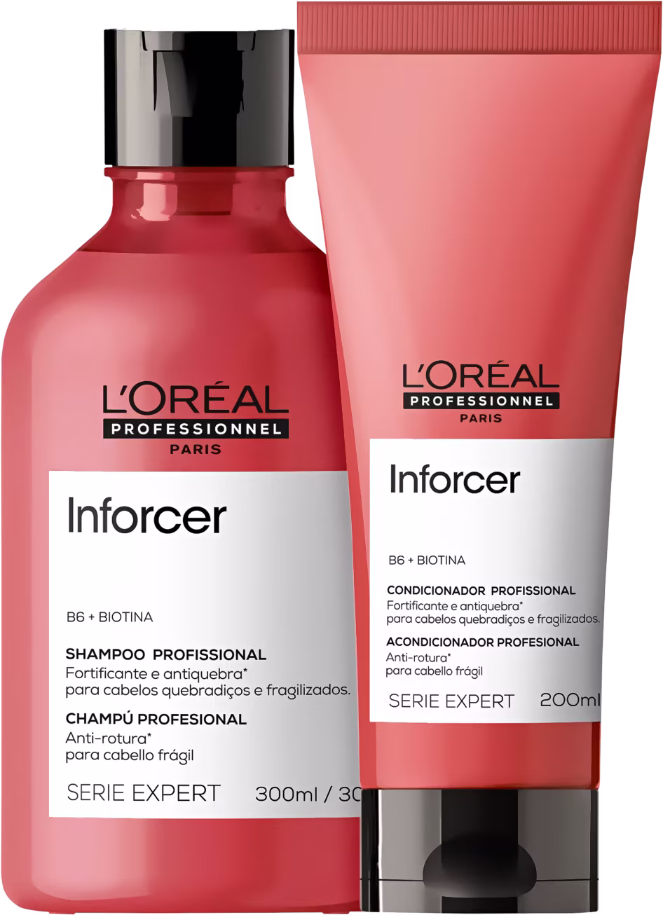 O Kit L'Oréal Professionnel Serie Expert Inforcer Home Care previne a quebra e fortalece os fios, deixando-os muito mais resistentes, macios e com brilho. Também auxilia para atingir maior comprimento do cabelo.