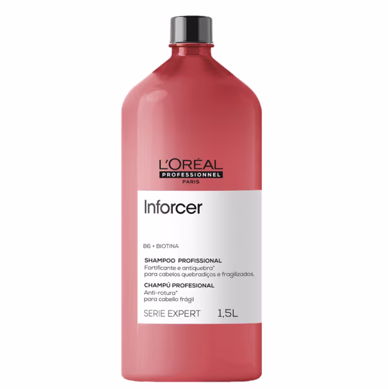 L'Oréal Professionnel Serie Expert Inforcer - Shampoo 1,5L: com fórmula enriquecida com vitaminas B6 e Biotina, para uma ação antiquebra instantânea. Os cabelos ficam instantaneamente mais resistentes e mais fortes. Reduz a queda e proporciona cabelos mais saudáveis, com brilho e maciez.
