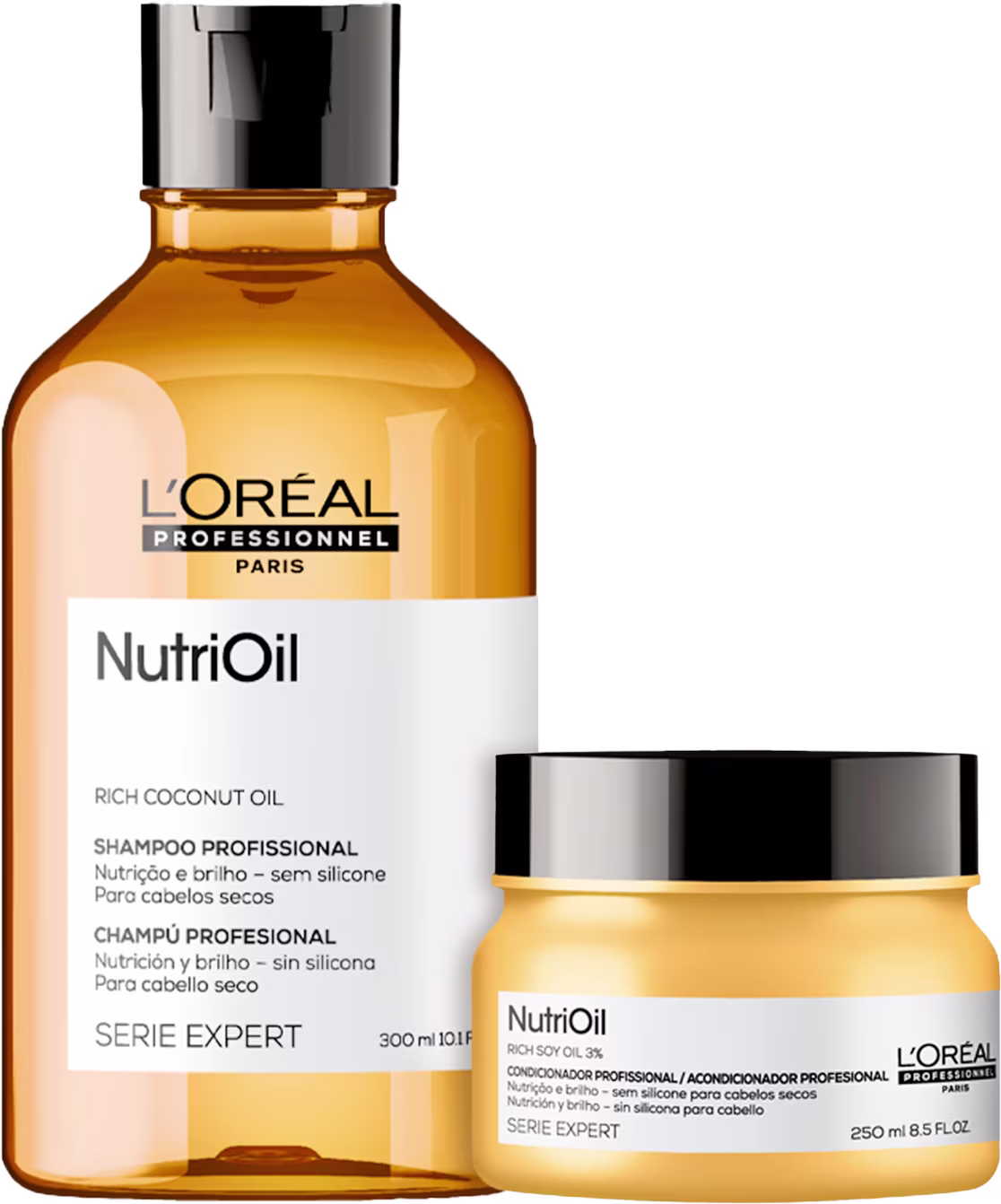 Kit L'Oréal Professionel Serie Expert NutriOil Treatment oferece alto poder de nutrição e hidratação porque conta com óleo de coco em suas fórmulas. Por ser leve e rapidamente absorvido, ele devolve toda a emoliência que o fio perdeu com rapidez e sem deixar a sensação de peso. Os fios ficam bonitos, com brilho e cheios de movimento.