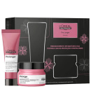 O Kit L'Oréal Professionnel Serie Expert Pro Longer Special Duo penetra profundamente na fibra capilar, restaurando a densidade e a força natural dos cabelos. Uma vez em ação, a opção reduz visivelmente as pontas duplas, restaura a maciez e devolve o brilho radiante aos fios, revelando um cabelo até 5 vezes mais luminoso.