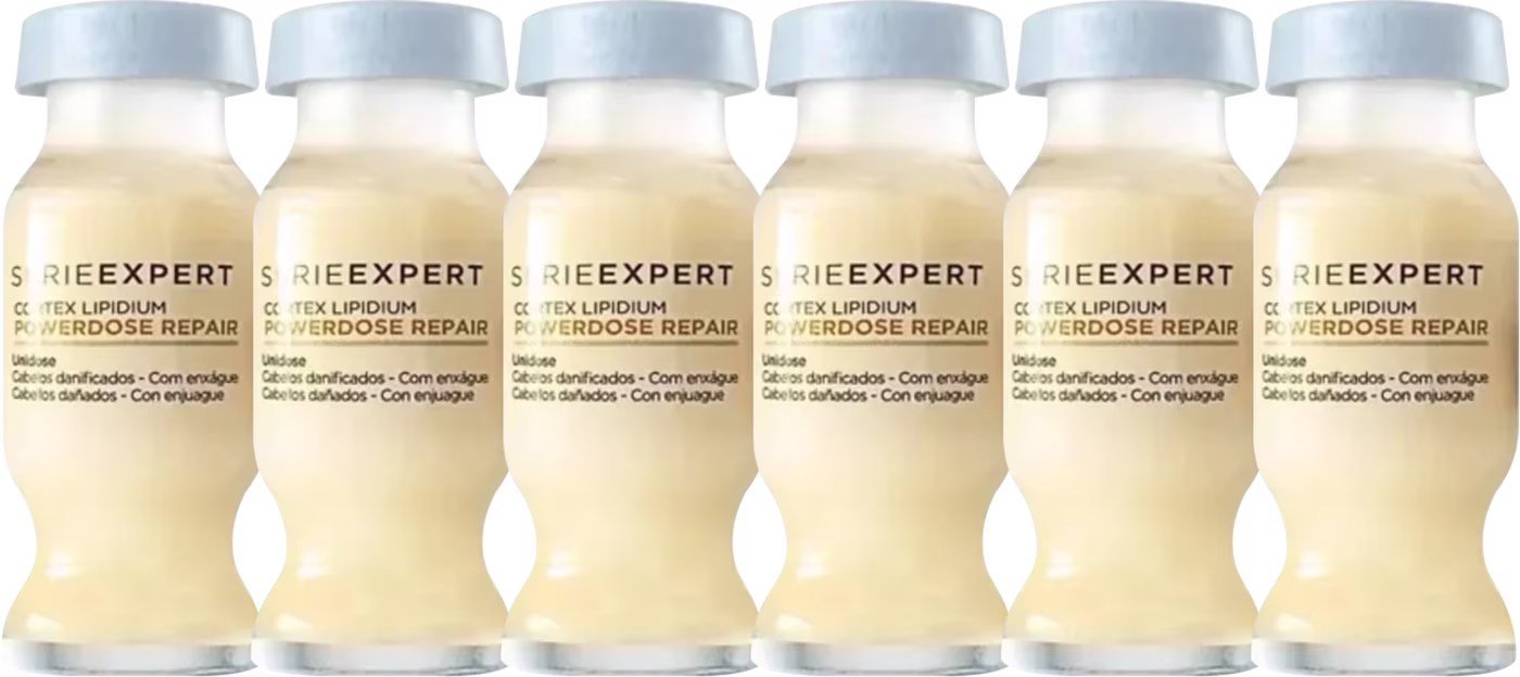 Kit com ampolas capilares para cabelos danificados e frágeis. L'Oréal Professionnel Six Serie Expert Ampola Powerdose Absolut Repair Cortex Lipidium oferece um tratamento intensivo e eficiente.