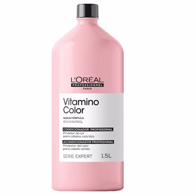 L'Oréal Professionnel Serie Expert Vitamino Color - Condicionador 1,5L: além de selar a fibra capilar, ajuda a manter a cor por mais lavagens, preserva o cabelo nutrido por mais tempo e proporciona brilho intenso.