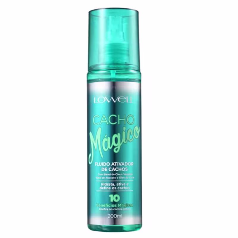 Lowell Cacho Mágico - Fluído ativador de cachos 200ml: reduz o frizz e garante fios soltos, leves e macios por mais tempo. É perfeito para o day after, ou seja, o dia seguinte a lavagem, no qual os cachos podem perder a forma devido ao atrito com o travesseiro. São 10 benefícios em apenas 1 produto, que deixa qualquer cabelo cacheado magnífico.