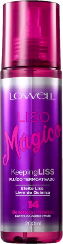 Lowell Liso Magico - Fluido Termoativado 200ml: fluído termoativado para todos os tipos de cabelo. Liso Mágico Lowell promove efeito liso sem frizz com maciez e brilho intensos.