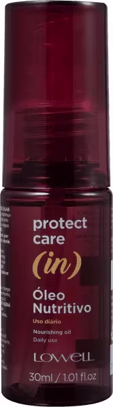Lowell Protect Care (in) - Óleo Nutritivo 30ml: garante toque macio e brilho ao cabelo. Devolve a camada lipídica e repõe profundamente os nutrientes dos fios.
