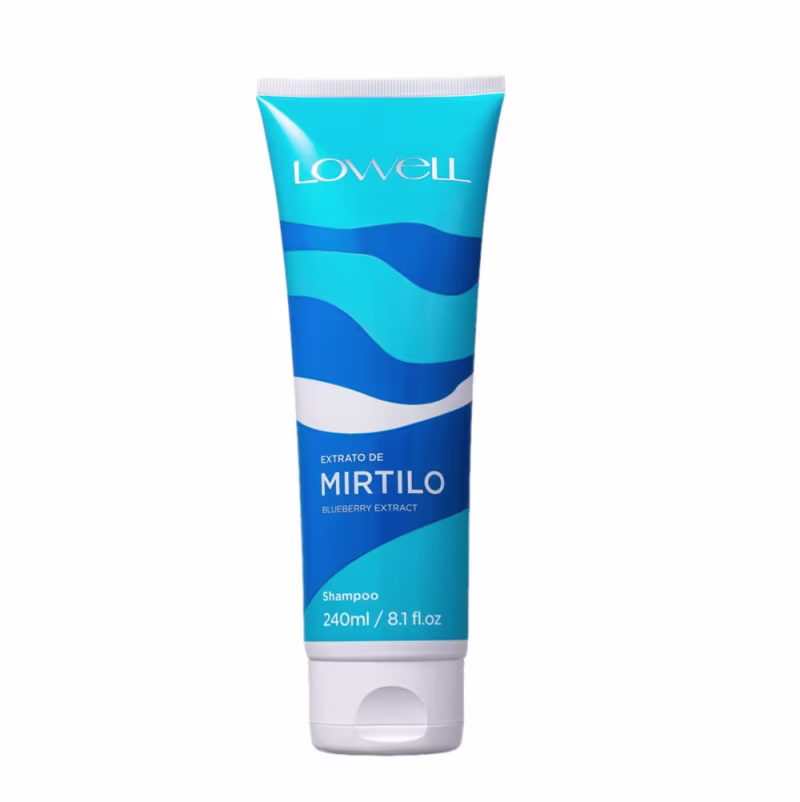 Lowell Extrato de Mirtilo - Shampoo 240ml: possui fórmula biotecnológica que hidrata e garante maciez ao cabelo enquanto higieniza e combate a oleosidade excessiva, sem ressecar. Também conta com ação prebiótica, que é essencial para a prevenção da caspa.
