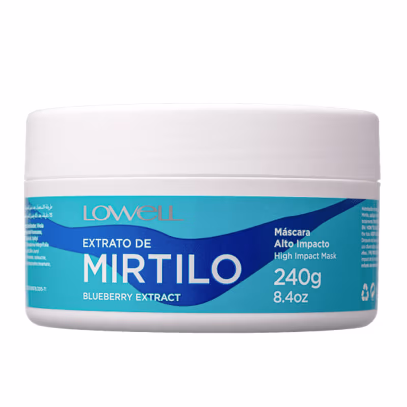 Lowell Extrato de Mirtilo - Máscara Capilar 240g: promove um tratamento que resgata a aparência saudável do fio e garante brilho intenso. Foi desenvolvida para auxiliar na hidratação e regeneração completa do cabelo, sem deixar o aspecto pesado. Sua fórmula devolve a maciez e ainda forma um escudo de proteção contra a perda de proteínas.