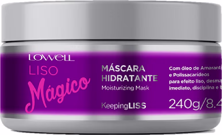 O Kit Lowell Liso Mágico Máscara Hidratante Duo proporciona efeito liso livre de química, enriquecido com Óleo de Amaranto e Matrix de Algas Vermelhas. Garante efeito liso escorrido, auxilia no desembaraço e protege da umidade.