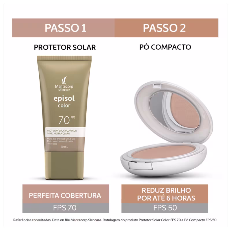 Kit com protetores solares com cor. Mantecorp Episol Color Tom 2 Double protege sua pele contra os raios solares e a luz visível.