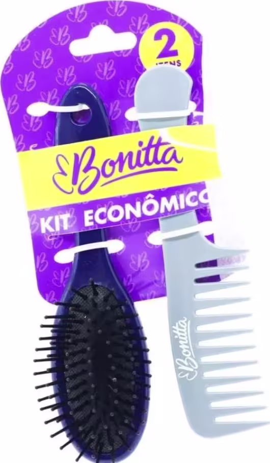 Kit com escova e pente de cabelo em tamanho pequeno. Marco Boni Bonitta Escovas Economic Duo desembaraça com delicadeza e cuidado.