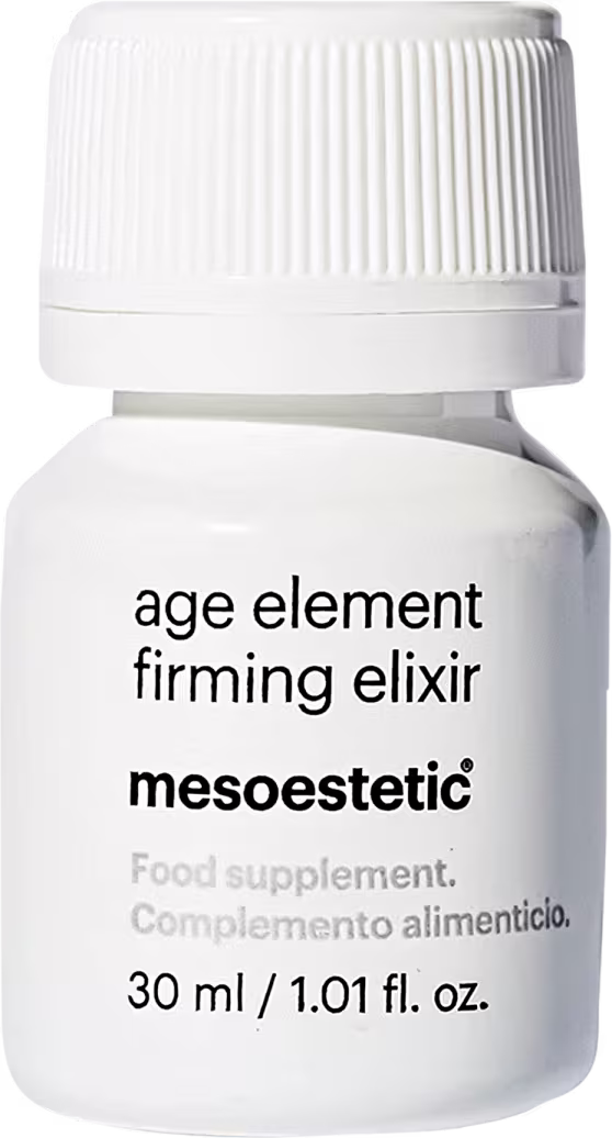 Suplemento de colágeno. Mesoestetic Age Element Elixir estimula a produção e protege o colágeno, proporcionado maior firmeza para pele.