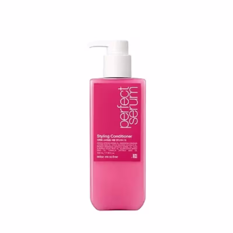 Mise en Scène Perfect Serum Styling - Condicionador 530ml: ideal para cabelos que sofrem danos de ferramentas térmicas, o condicionador proporciona nutrição e cria uma base ideal para estilizar os cabelos. Sua fórmula à base de polímeros ajuda a manter os cachos, deixando-os com uma aparência encorpada por mais tempo.