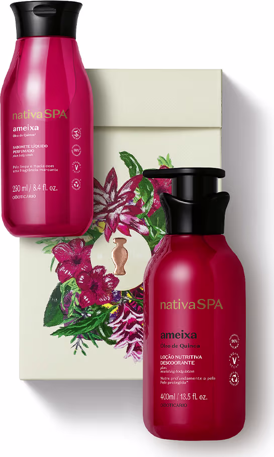 Com gotas purificadas de Quinoa, a semente da beleza, a Loção Hidratante Desodorante Corporal Nativa Spa Ameixa oferece hidratação profunda e previne a perda da elasticidade da pele. Sua fórmula exclusiva estimula a produção de colágeno, garantindo um aspecto suave e saudável, acompanhado pela fragrância marcante de Ameixa que intensifica a desodorização do corpo.