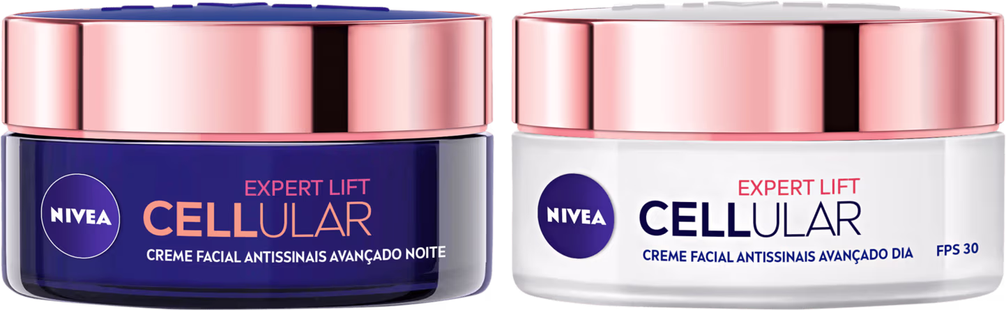 Não sei o CEPKit com cremes faciais antissinais para dia e noite todos os tipos de pele. Kit NIVEA Expert Lift Cellular Duo promove uma hidratação intensa e suaviza sinais.
