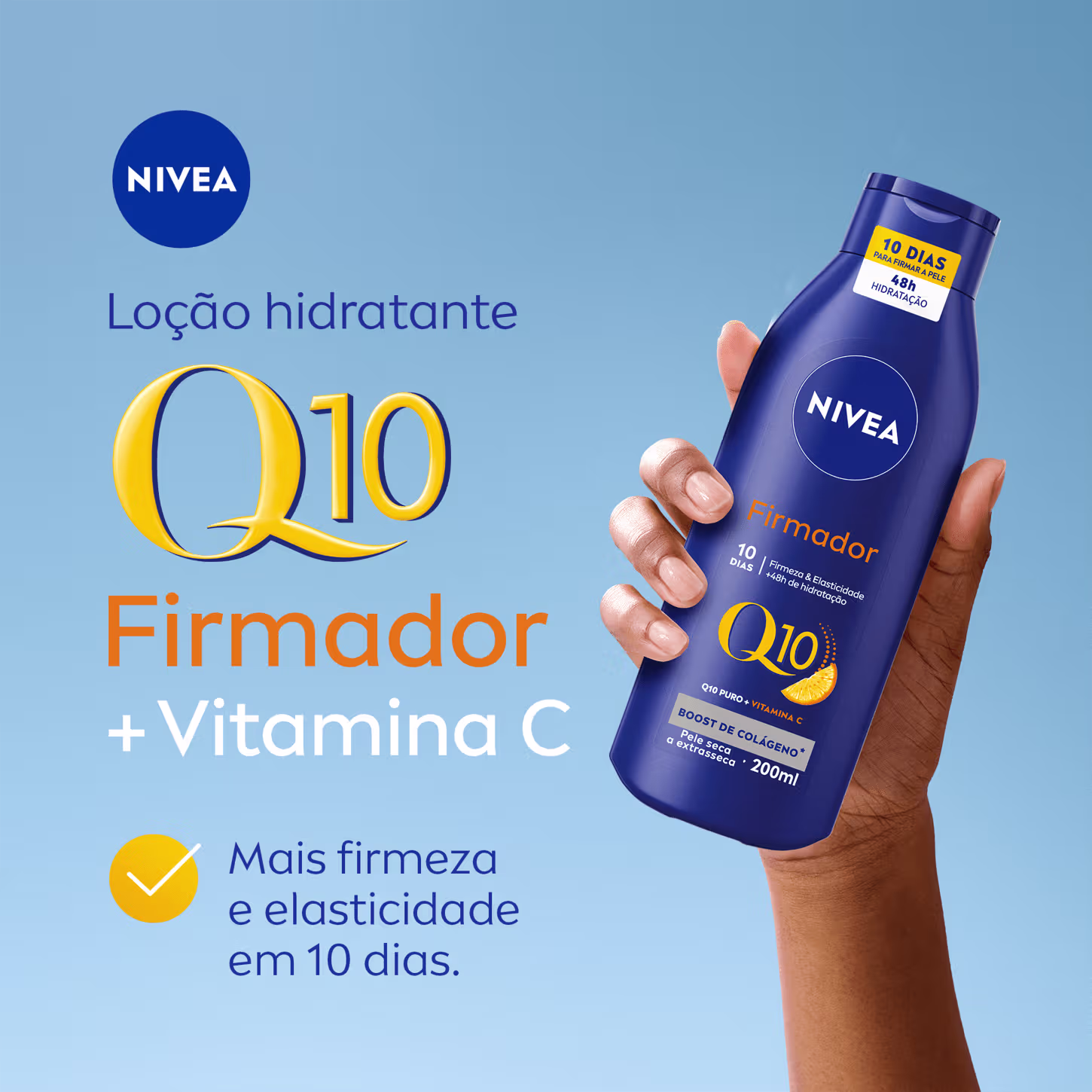 Não sei o CEPKit com loções hidratantes para peles secas ou extrasecas. NIVEA Firmador Q10 + Vitamina C Pele Seca recupera a elasticidade enquanto hidrata e evita a flacidez. Garante um corpo com aspecto mais jovem e firme e mantém a maciez e luminosidade por 48 horas.
