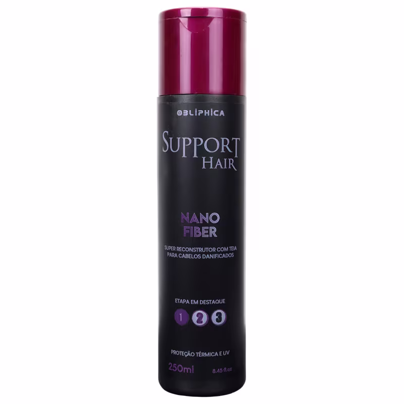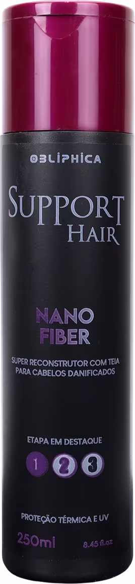 Obliphica Cosméticos Support Hair Nano Fiber - Tratamento Capilar 250ml: desenvolvido para restaurar a fibra capilar danificada de dentro para fora, proporcionando fios mais fortes e saudáveis. Elaborado com um poderoso Blend de aminoácidos, este poderoso produto tem o poder de restaurar a resistência do cabelo, melhorar a elasticidade dos fios e fortificar a estrutura capilar para que possa suportar novos procedimentos químicos.