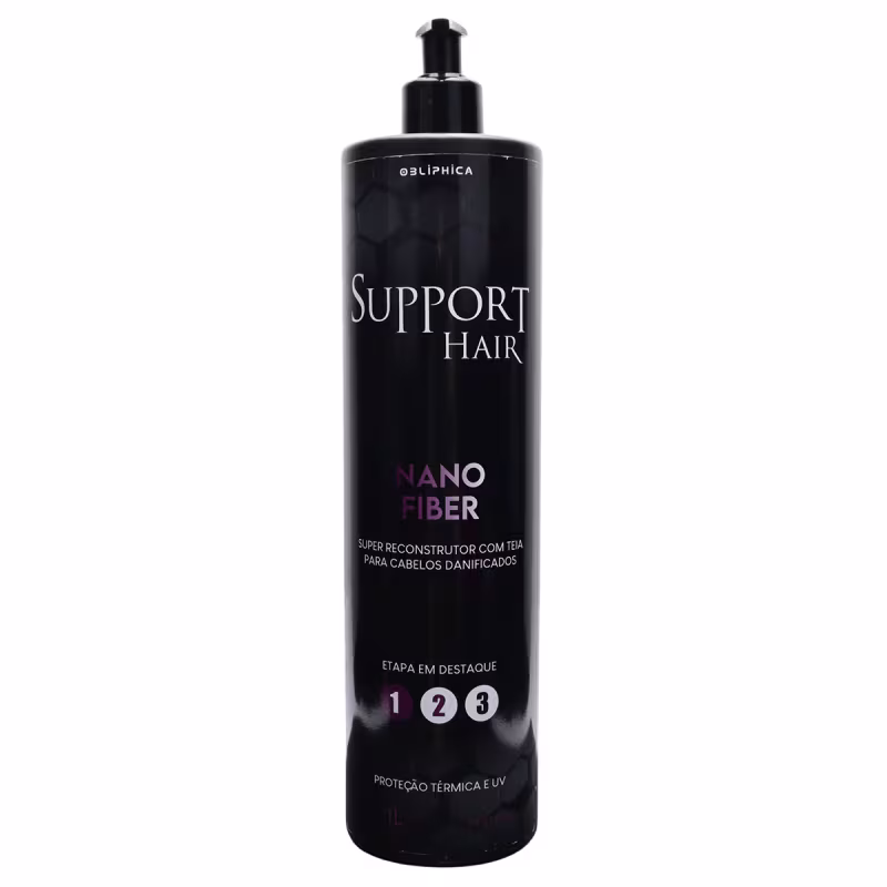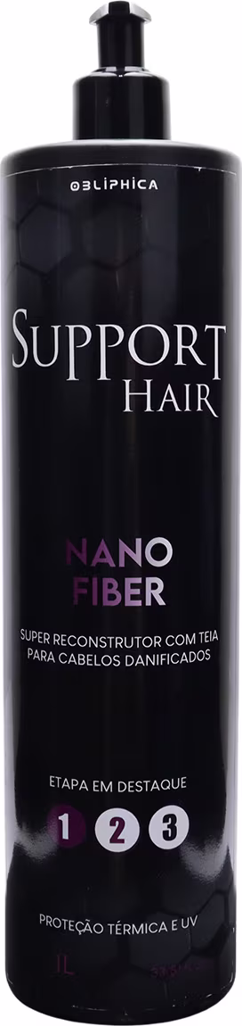 Obliphica Cosméticos Support Hair Nano Fiber - Tratamento Capilar 1L: desenvolvido para restaurar a fibra capilar danificada de dentro para fora, proporcionando fios mais fortes e saudáveis. Elaborado com um poderoso Blend de aminoácidos, este poderoso produto tem o poder de restaurar a resistência do cabelo, melhorar a elasticidade dos fios e fortificar a estrutura capilar para que possa suportar novos procedimentos químicos.