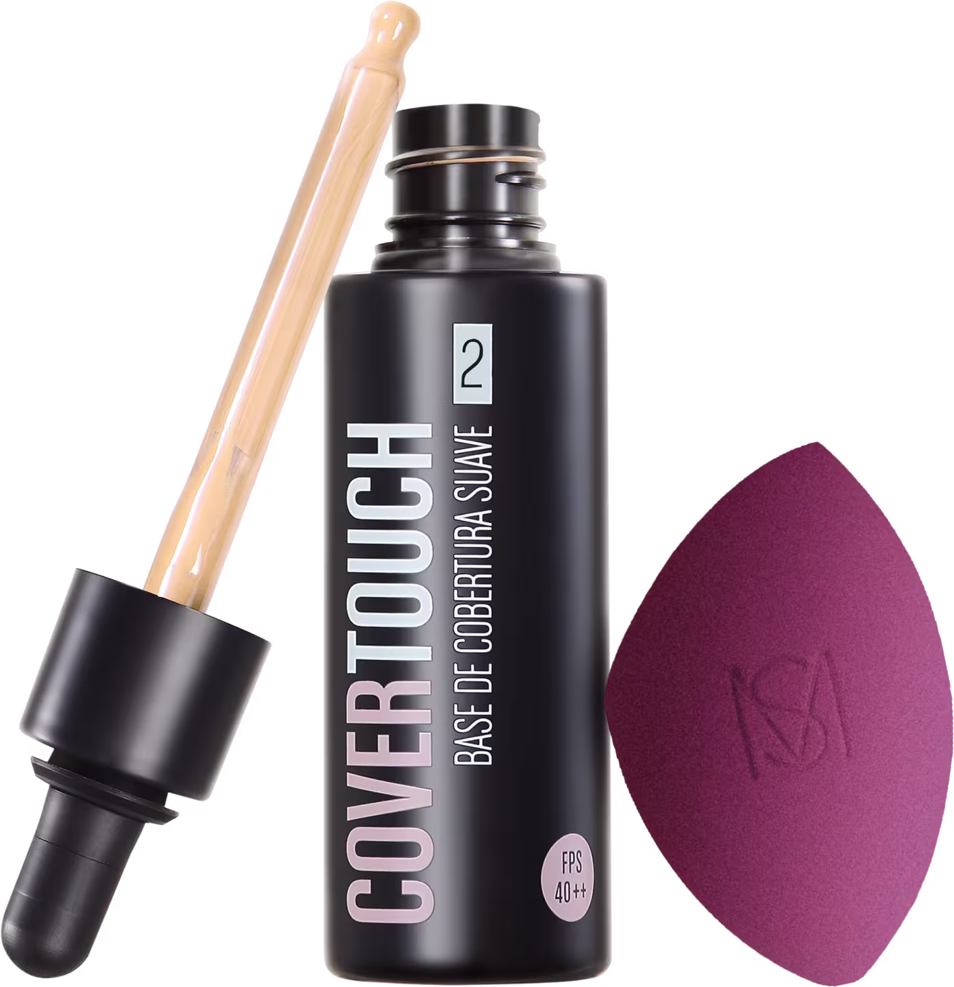 Kit com base líquida e esponja. Kit Océane Cover Touch Flat Blend 2 garante um rosto uniforme com acabamento natural e aplicação perfeita, inclusive nas áreas de difíceis acesso.
