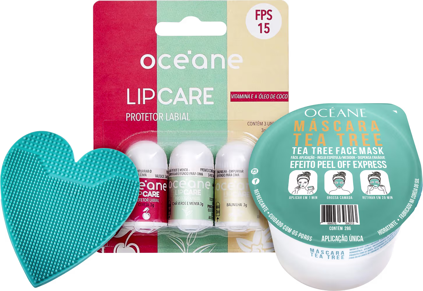 Kit com protetor labial, esponja e máscara facial. Kit Océane Pele Hidratada é o combo perfeito para deixar o rosto macio e purificado.