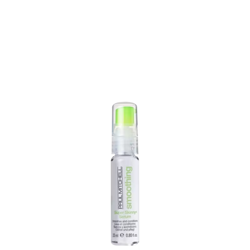 Paul Mitchell Smoothing Super Skinny - Sérum Capilar 25ml: O Sérum Paul Mitchell deixa um toque sedoso com muito brilho, protege da umidade, elimina o frizz e acelera a secagem! Como Usar:Friccione uma ou duas doses do produto na palma das mãos e distribua sobre os fios úmidos, iniciando pelas pontas e subindo em direção à raíz. Reaplique nos cabelos secos para realçar a maciez e brilho dos fios.