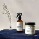 Kit com vela e spray aromatizador. Pavio de Algodão Lavanda + Patchouli promove um ambiente com perfumação agradável e aconchegante.