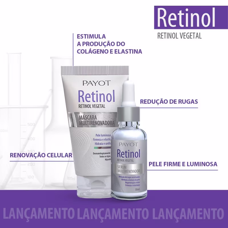 Payot Retinol Multirenovador - Sérum Facial 30ml: diminui os poros, devolve a vitalidade da pele, reduz linhas finas e rugas profundas e melhora a flacidez na área dos olhos.